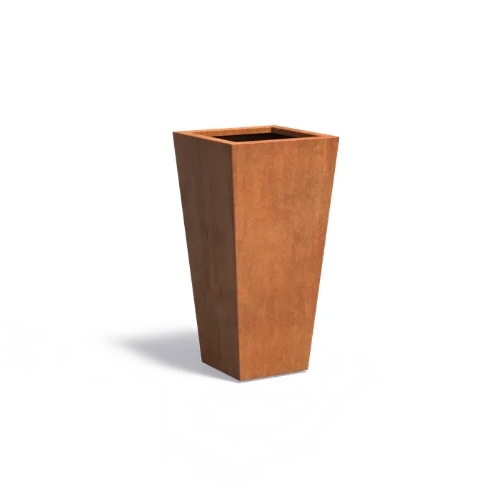 De cortenstaal plantenbak TAP is leverbaar in verschillende maten en zo makkelijk te plaatsen op u balkon, terras of in de tuin. Een set cortenstaal plantenbakken kan ook een mooie blinkvanger zijn bij de ingang van u bedrijf. Door verschillende formaten te combineren creëert u makkelijk zelf een geheel originele plantenbak met niveauverschillen. De bovenrand van de cortenstaal plantenbak TAP is dubbel omgezet. Materiaaldikte van de cortenstaal plantenbak is standaard 2 mm (3-4 en 5 mm is op aanvraag mogelijk).