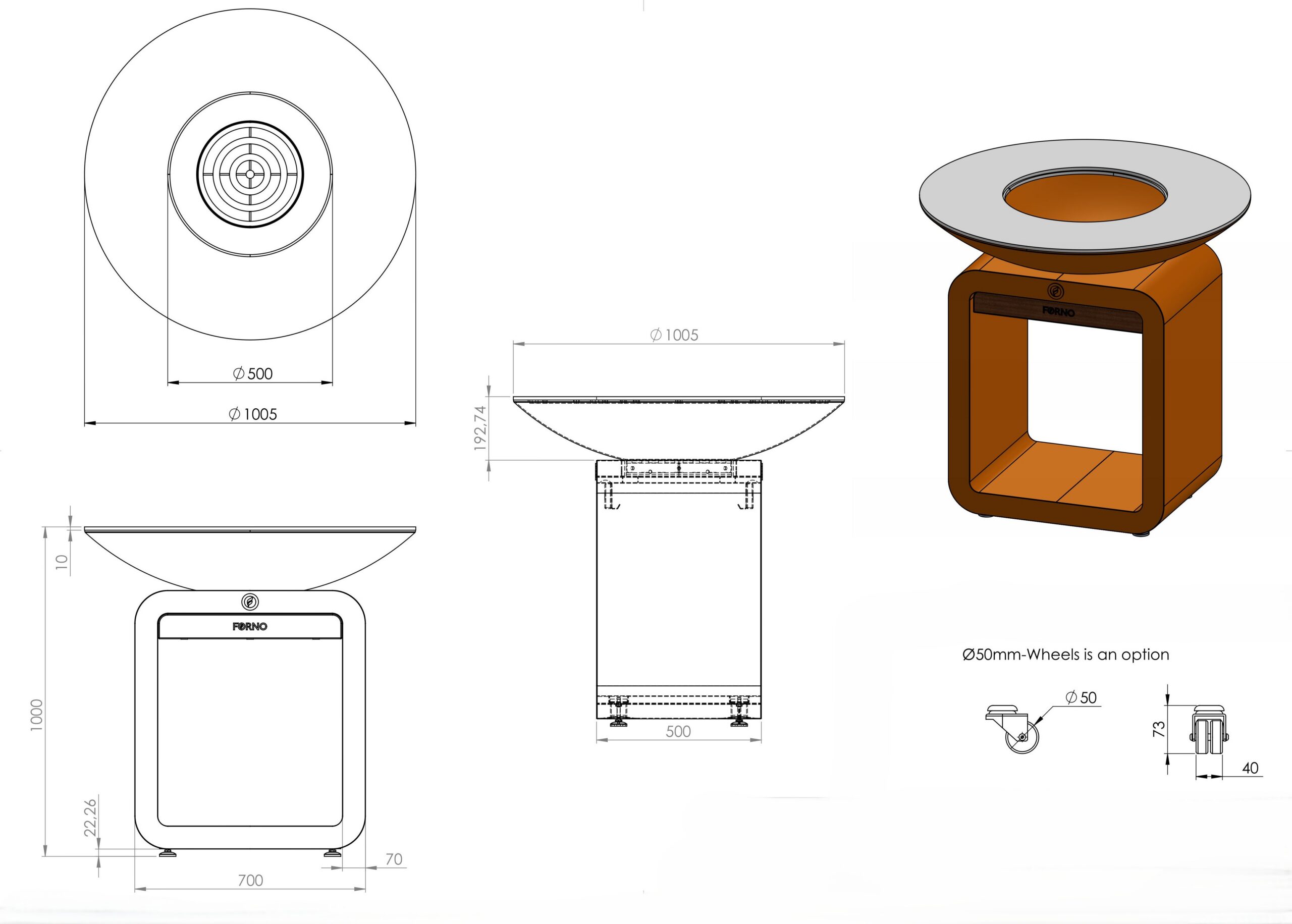 Deze Cortenstaal BBQ met bakring100 heeft verschillende kooktemperaturen.Het midden van de bakplaat is warmer dan de buitenkanten zodat koken nog gemakkelijker is en je alle ingrediënten samen kunt serveren. Ontdek een compleet nieuwe wereld vol mogelijkheden voor buiten koken. Met de extra grillset kunt u grillen en bakken tegelijkertijd. Voor iets minder personen is er ook een cortenstaal BBQ met een bakring van 80 cm te koop.